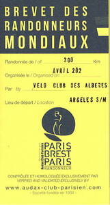 Brevet des Randonneurs Mondiaux AUDAX 300km