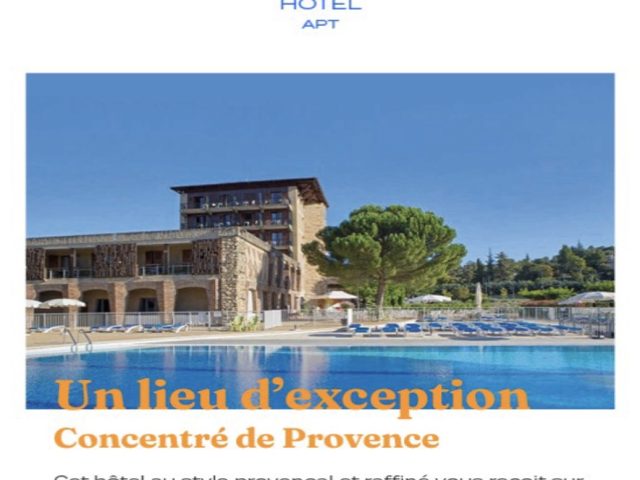 Et, c’est en participant à l’Eductour, séminaire organisé par Vacances Bleues en Avril, qu’une nouvelle destination nous était présentée, destination très prisée, surtout par les cyclistes….l’hôtel Castel Luberon à Apt, dans le Vaucluse.