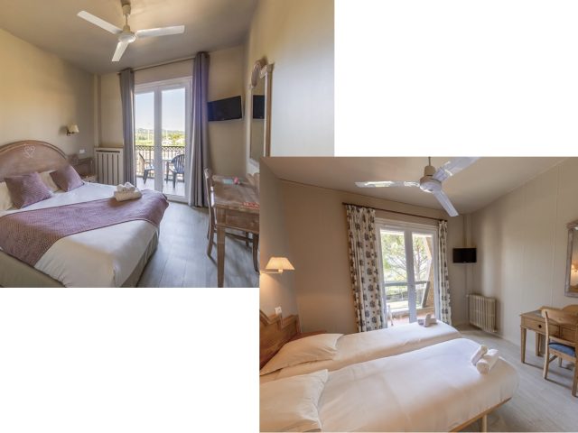 L’hébergement en chambre double confort (pour 2 adultes), non-fumeur, avec TV écran plat, terrasse ou balcon, service hôtelier